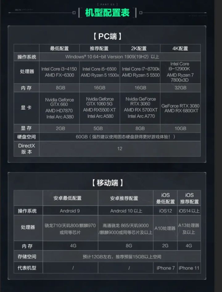 🎉更难能可贵的是,官方对于优化也很上心,不管是pc端,还是手机端,要求的性能配置都很低,哪怕是数年前的机型性能,都能玩上游戏!据说后续还会一直优化下去(配置性能如图二所示)