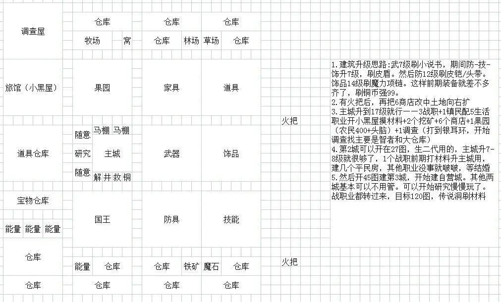 一城参考布局 每个店都靠近所需材料 节约时间 其他房子可以随便建 后期把仓库换成高级的就够用了
