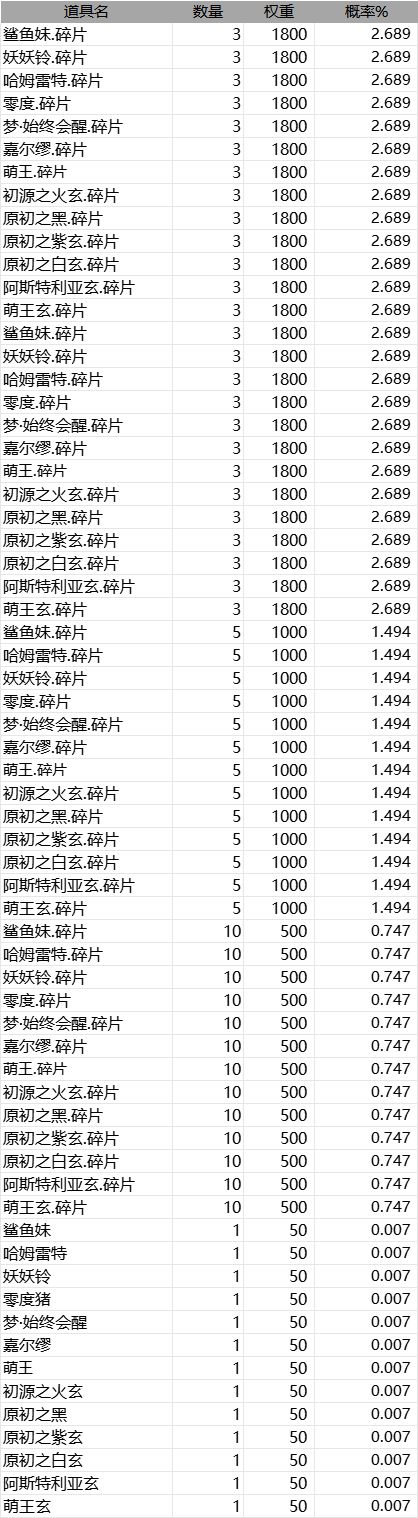 3. 提升每周特惠扭蛋机获得宠物碎片的数量,提高获得整宠的概率