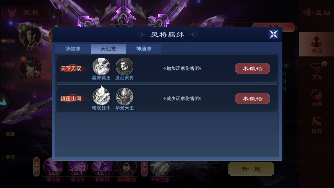 激活条件:魔界冥王、真武大帝、月宫仙子