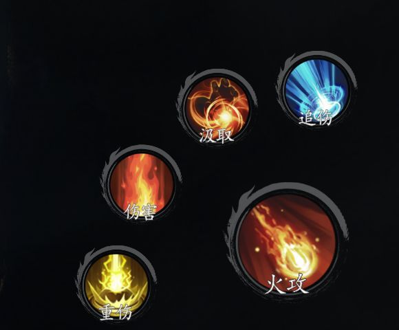 该流派以火系技能的灼伤为主要伤害来源,再用金技能挂加伤,水技则单纯是因为加成高且CD不长补伤害用的,如果觉得不需要可以替换为辅助技,详细的技能解释如下: