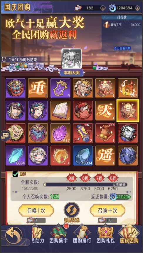 活动期间,游戏内参与国庆团购活动。消耗资源越多,获得返还资源越丰厚。