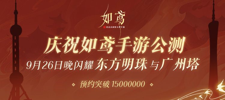 庆祝公测,《如鸢》手游将于9月26日夜间,于东方明珠、上海外滩、广州塔展示定制灯光。