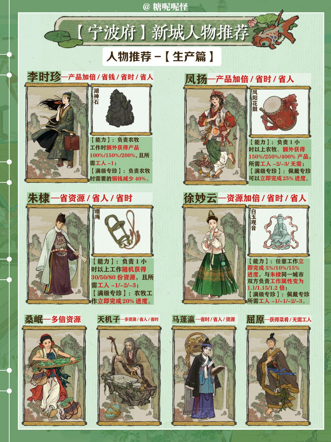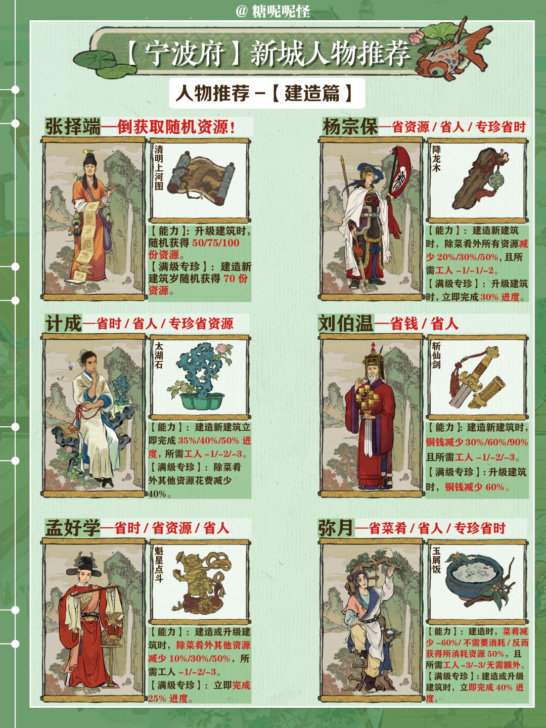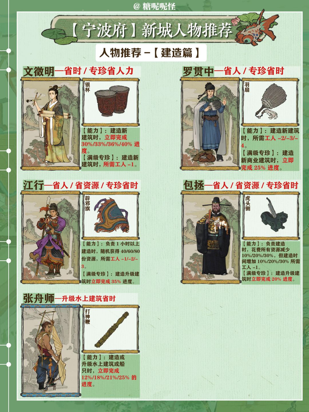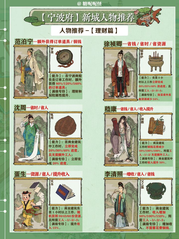 1️⃣宁波府玩法主要是【营造工具】和【货集通宝】的获取,这两个道具来源于市舶司商船出海经商,用于升级商船和开地,主要需要【探险】和【理财】属性人物,可以大大减少出海时间和增加道具获取的数量;