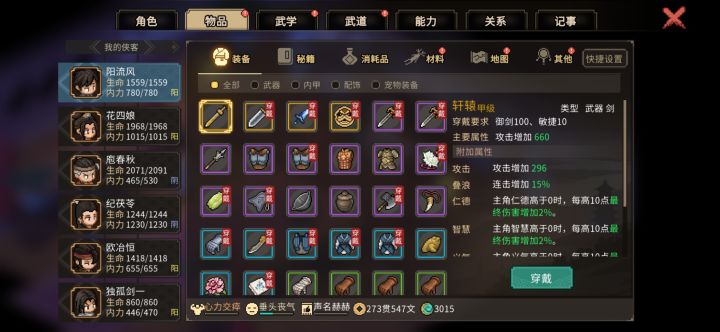 大侠立志传 主角武器选择