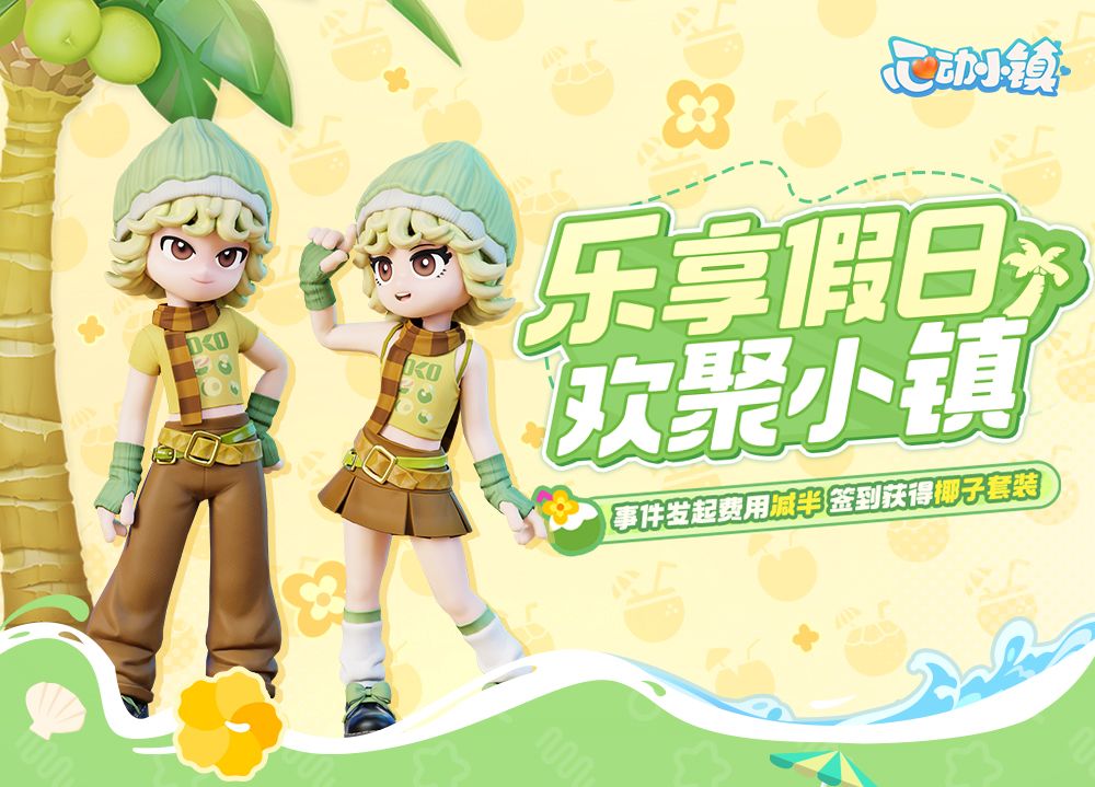 9月28日至10月12日,发展家每日登录游戏即可在对应活动页面签到,领取一件限定时装部件。完成全部7天签到,将可以获得完整的两套限定椰子套装。