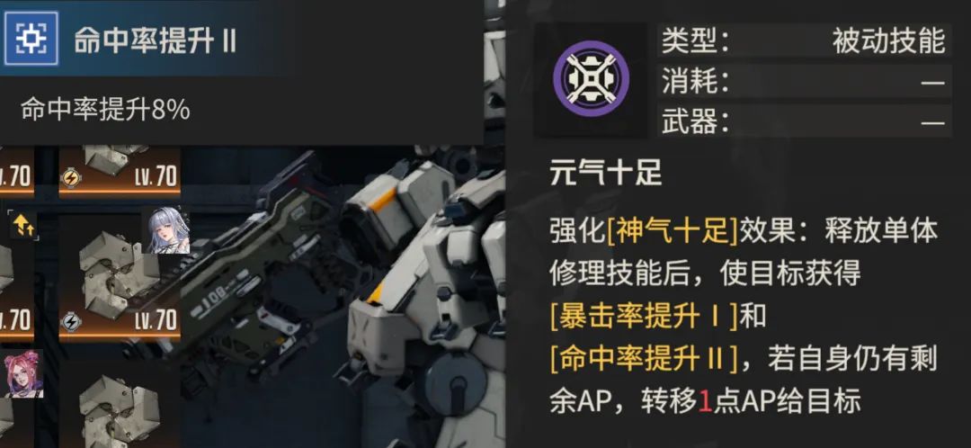 接着我们来说罗娜这个专武,第一个功能是提升被动治疗的治疗量,属于一个锦上添花般的效果。