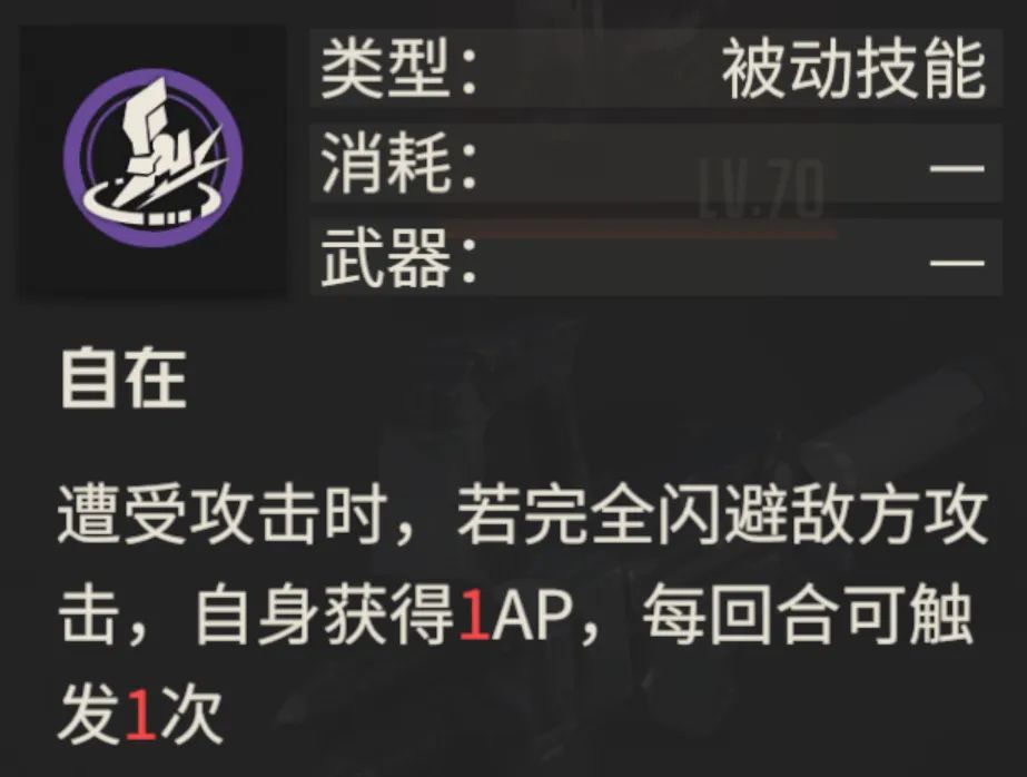 如上图所示,在实战中如果我们主动攻击敌人,而在敌人反击时如果触发了完全闪避,虹并不会回复1点AP,这个效果和描述并不相符,所以要不就是bug问题,要不就是官方的技能描述并不严谨,应该明确写到仅限对方主动进攻时完全闪避对方攻击才能回复1点AP。
