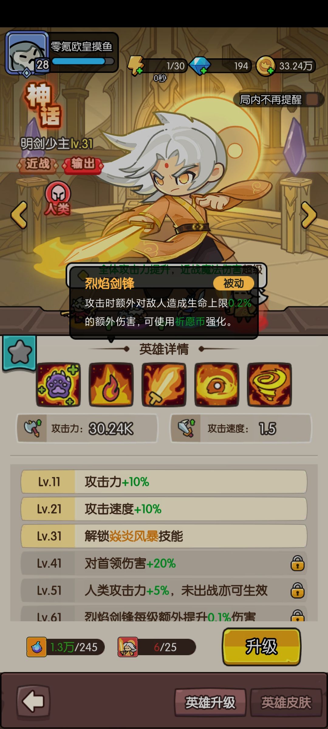 ③第三个是取决于是否能够通关的【明剑】,明剑具有额外百分比生命伤害,在60关卡前要给明剑强化技能升满,因为明剑到了70关以后才会有用武之地,70关的小怪【防高血厚】,凤凰就打不太动,这时候就是百分比【明剑】的主场了,建议做2个名剑即可。