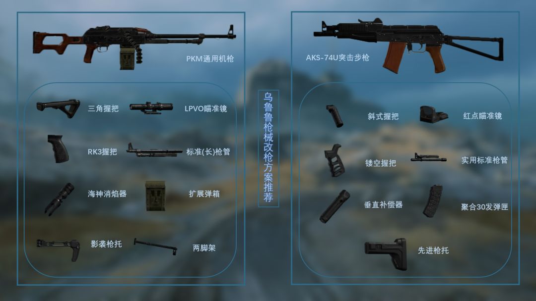 至于Ak就是正常的武器改装方案,这个Ak的改装方案是适用在“摸金玩法”中的,“pkm”的改枪方案在建议在全面战场中使用。