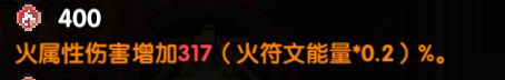 火属性伤害增加(假如你是1500的符文能量,那就是1589*0.2=317)%