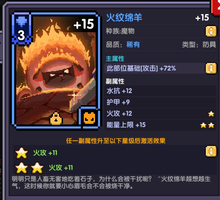 属性选择:火攻,爆伤,攻强/穿透(前期建议穿透)