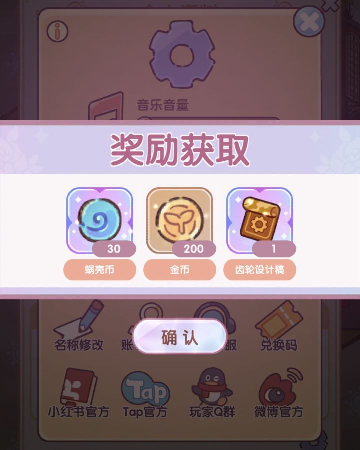 🌟内容:蜗壳币*30、金币*200、齿轮设计稿*1