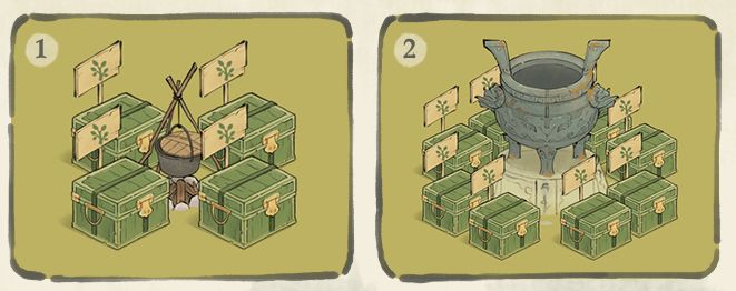 1、在设施或神农鼎相邻一格处摆放的木匣中的材料,可以在使用设施进行加工时被自动取用。