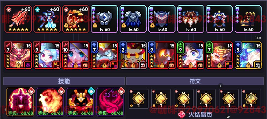技能以满80级:魔女宝石选择3个【伤增,克制,火压】+6个通用毕业【伤增,克制,火压】
