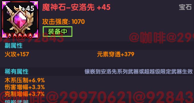 注意2:伤增+压制为最优解,如果带点暴击,盾伤,属功的宝石也可以用。