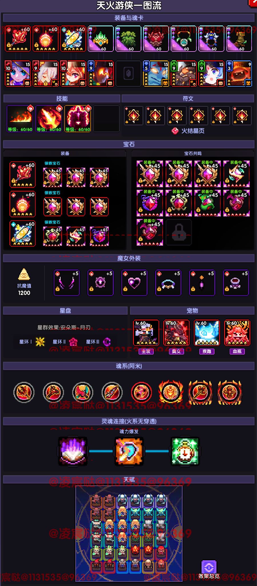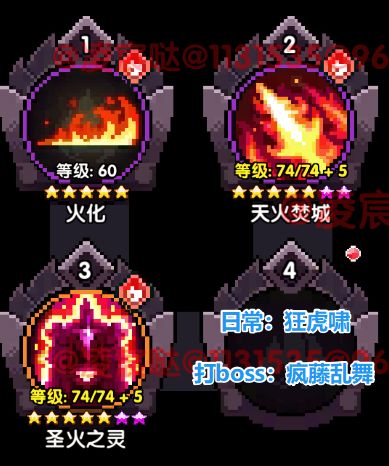 天火游侠的毕业搭配为:9木系压制+9伤害增幅+9克制增幅