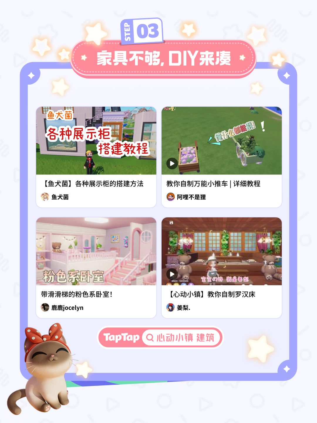 不管是建筑外形、家居内饰,还是创意满满的DIY,都可以在页面当中找到!还不擅长建造基本操作的发展家们也不用着急,页面中也准备了入门教学合集哦,一起来看看吧!