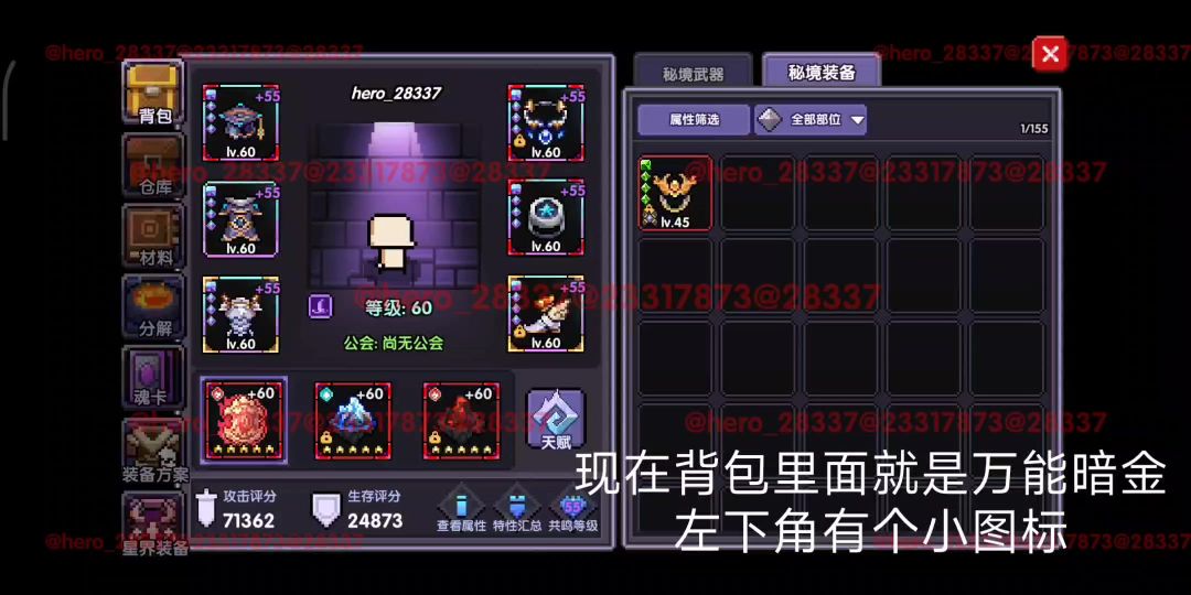 1.一个人只能同时拥有一件万能暗金(新选变化的会覆盖之前的)