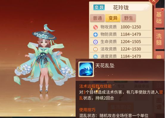 介绍语:55等级宠物可选花玲珑,依托主动天赋,搭配法术连击1速法宠可以概率先手混乱。喜欢物攻宠物的修士,也可以选择隐攻熊猫,仍旧是隐身+物理连击实现单点击杀。