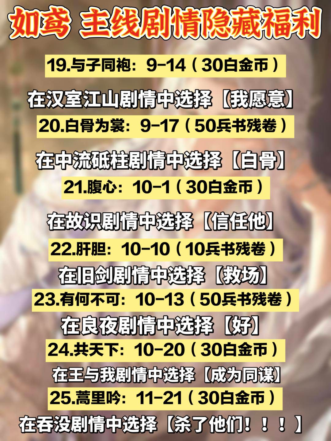 「如鸢」主线剧情 全部隐藏成就福利 全攻略