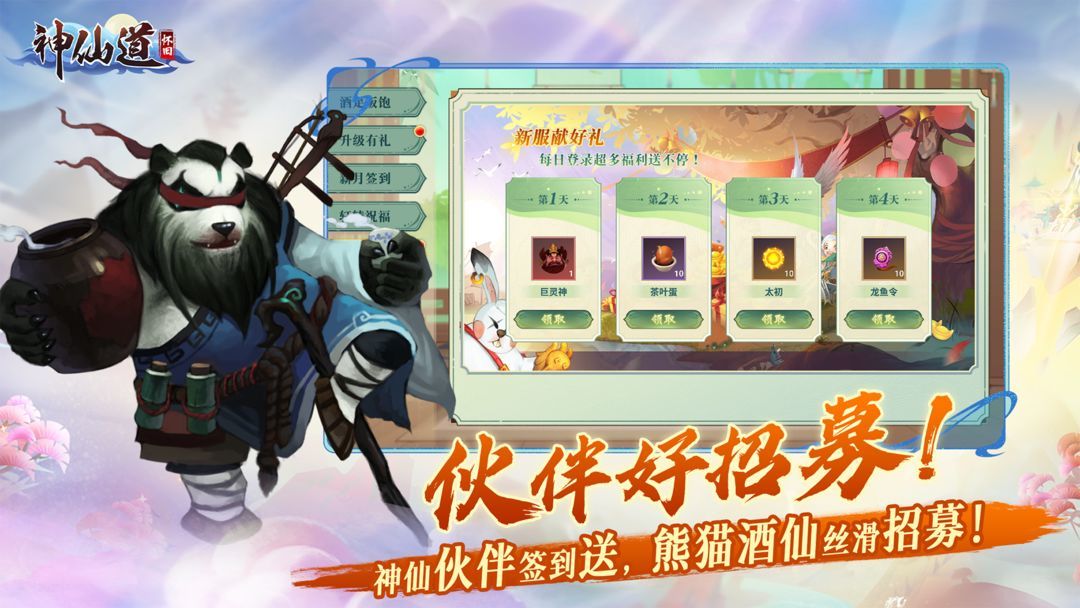 ✦伙伴好招募!神仙伙伴签到送,熊猫酒仙丝滑招募!