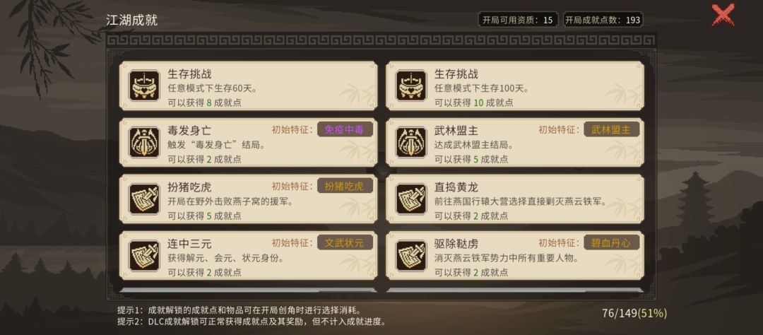 建议是有一定的游戏理解再去玩散修,我自己摸索了几天,开了一百成就才真正步入正轨,也不是说最初始成就开局不能玩,而是有些天赋后玩起来会更舒服。