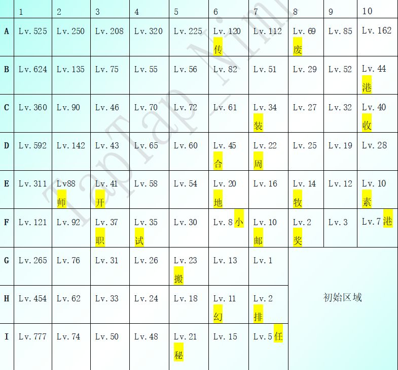 Lv777-525区域(最高Lv777):开放区域68个(和平度77%)+3个城镇
