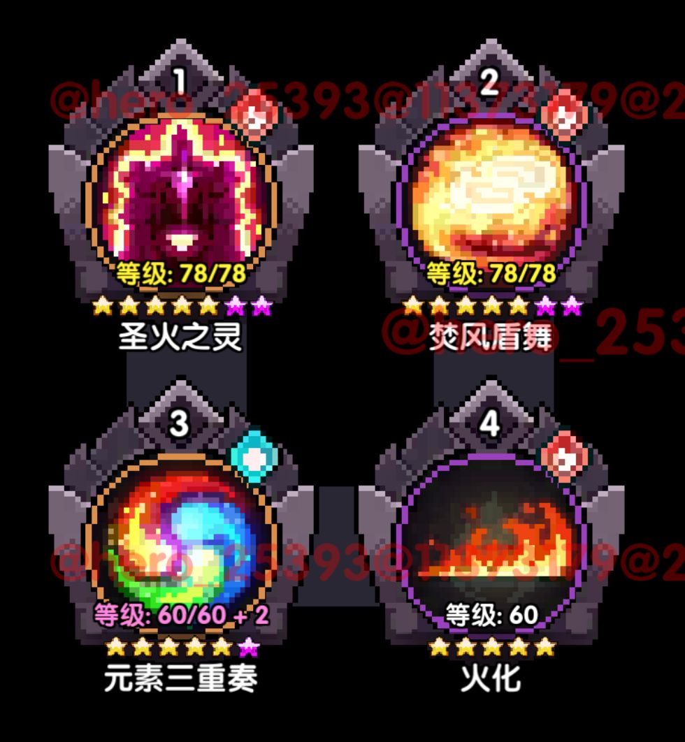 武器卡:传说勇者-术,偶像克罗,烈焰龙皇,主属性-爆伤