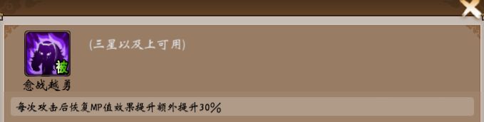 三星进阶皮肤技能::愈战越勇,每次攻击回复MP值效果提升额外提升30%