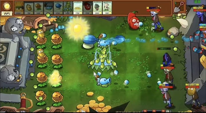 🎮冰火裂荚射手:能同时向左边发射两颗冰豌豆,右边发射两颗火球,点击植物可以转换方向,增强了植物的攻击灵活性和多样性。