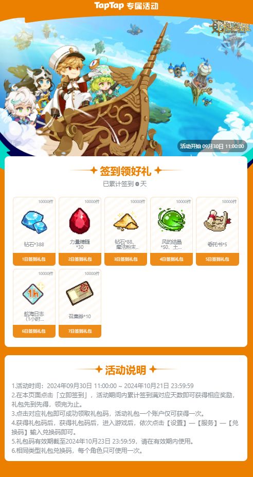 1、限时内点击签到礼包进入签到页,再点击下方的签到即可参与