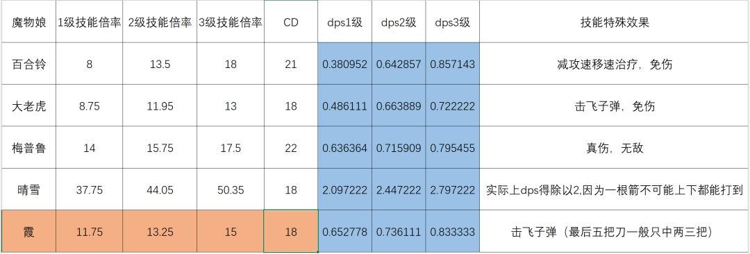 (3)倍率较低,2,3级大招的输出倍率比不上盾娘,百合铃等魔物娘。