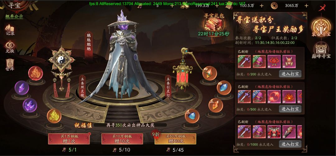 2、寻宝达到一定次数,则可进入该档寻宝的BOSS地图,例如:200次可进入低级,500次可进入中级,1000次可进入高级