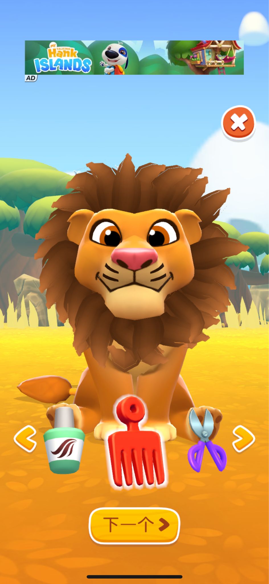 狮子的脏乱发型等着你来为它梳理,可以给狮子简单的洗个头,吹个风,梳理修剪发型,染个漂亮的发色,戴上美美的发饰,今天我又是一只美美的小狮子,可以和本狗狗一起快乐玩耍啦