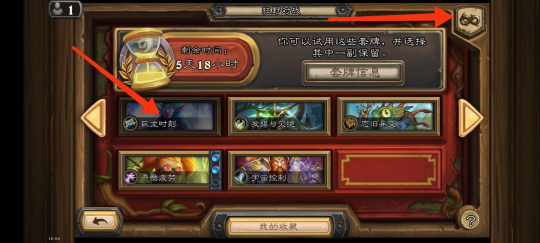 1.要使用“借用套牌”可一直点左边黄色箭头,点击“套牌信息”可直接领取一整套卡组,卡组价值最高的是宇宙战(如图五)
