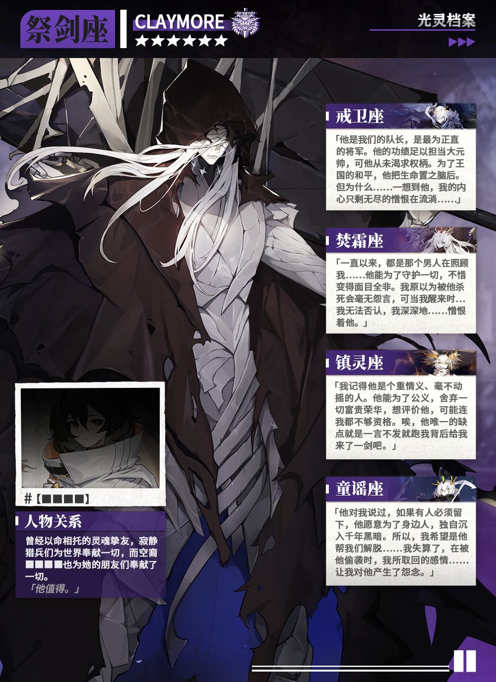 为了战友们的未来,■■■■选择了“背叛”,独自背负战友的不解与憎恨将他们封印。此后他杀出重围离开王国,致力抹除星辰的传说。直到世人将他们遗忘后,他来到黑暗的洞穴中坚守千年,等待挚友■■■■所祈愿的未来到来......