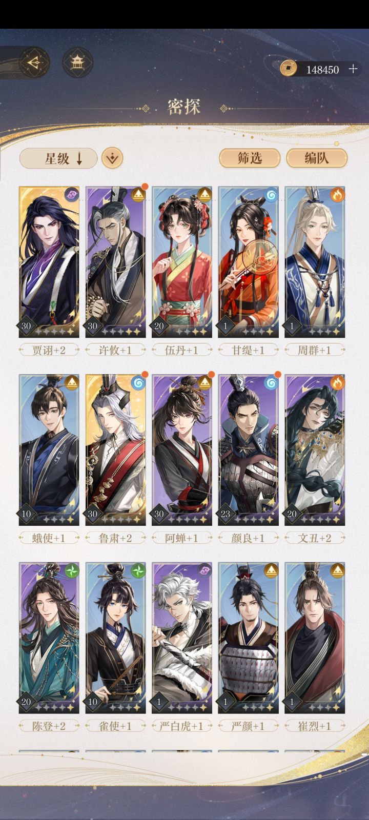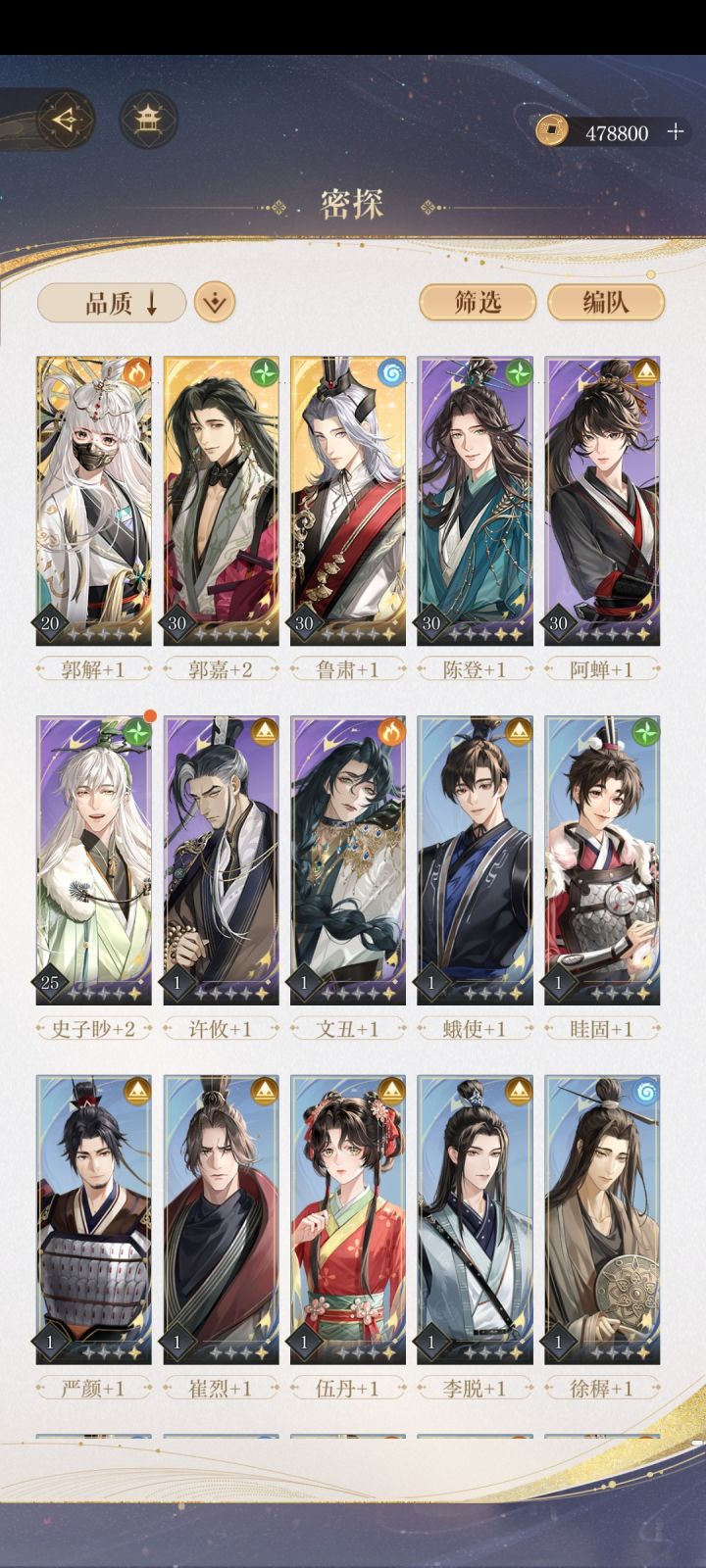3,前面抽到两个金就可以不用抽了,因为资源很缺,根本不够给别人拉等级,还有突破,前面先培养你抽到的三个金培养,在培养一个阿婵,陈登,这正好一队,前面就用他们推图,资源存起来