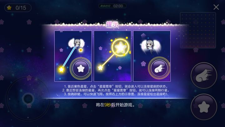 注意:一条直线只需要连接首位即可,不用连接中间的星星;不清楚自己的位置,可以看右上角的小地图,参考已经连接的线来判断位置。