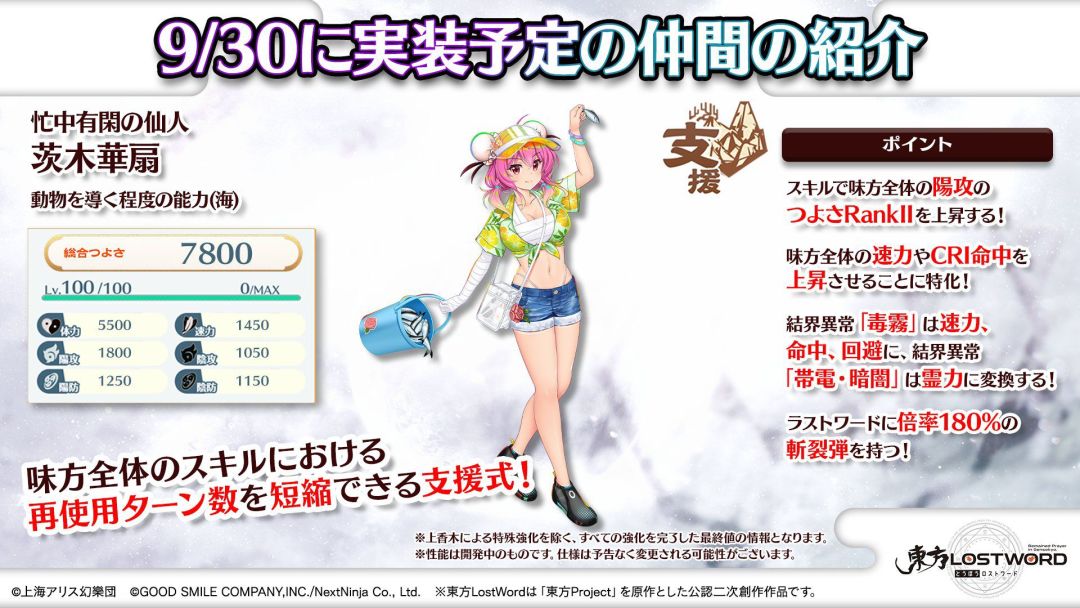 泳装华扇、怪盗咲夜、通行证、兽王国角色日服9月底更新