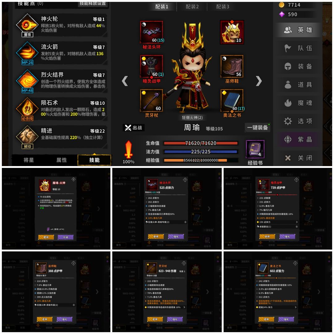 周瑜:7.1万血1万攻击,600爆伤,主手500爆副手异常7