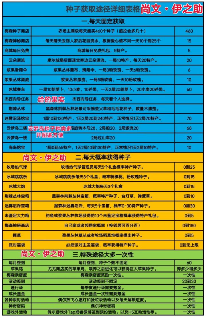 种子获取途径详细表格,种地摩快看