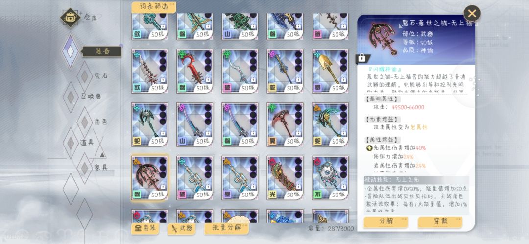 装备推荐光6+星空6。