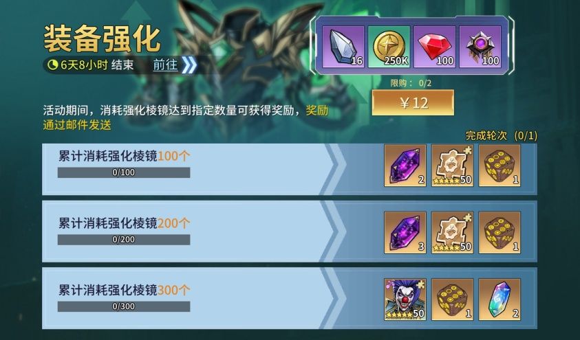 消耗强化棱镜达到指定数量可获得奖励,包括骰子、虚空魂石、五星通用碎片、星环宝石、【愚者】法努科等。