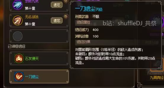 回去找一刀 得300贡献 学到绝招一刀绝尘 还算凑合 范围相当大