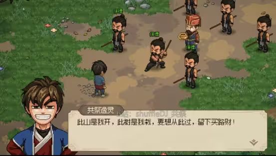 注意进入门派后左边走有4棵可以伐木的树 有时候你救的2个山贼会在这吃东西(夜间)