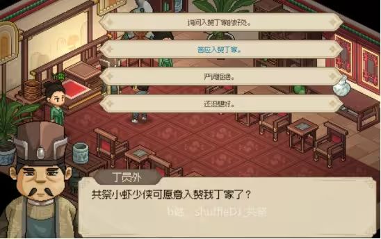 跟丁老爷好感刷到100 弹出对话 答应入赘后亥时左右过来 就成功结婚了
