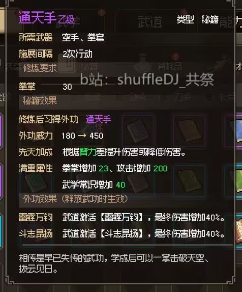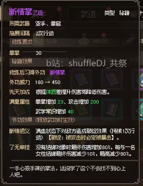 入队紫色武功拳法 断情掌 学艺有600下毒