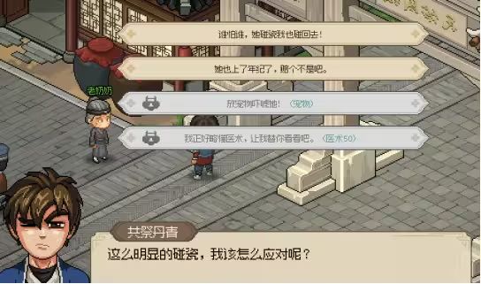 进城遇到吕子虚 选1打一架 掉他和将军府好感 得5000文钱 选2没啥用