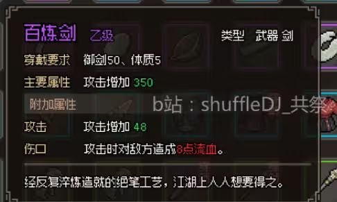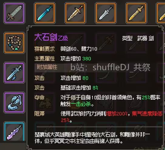 软垫碎了之后 补满体力生命再硬磕10次拿紫色剑 大石剑(原来也是100下哈哈哈)